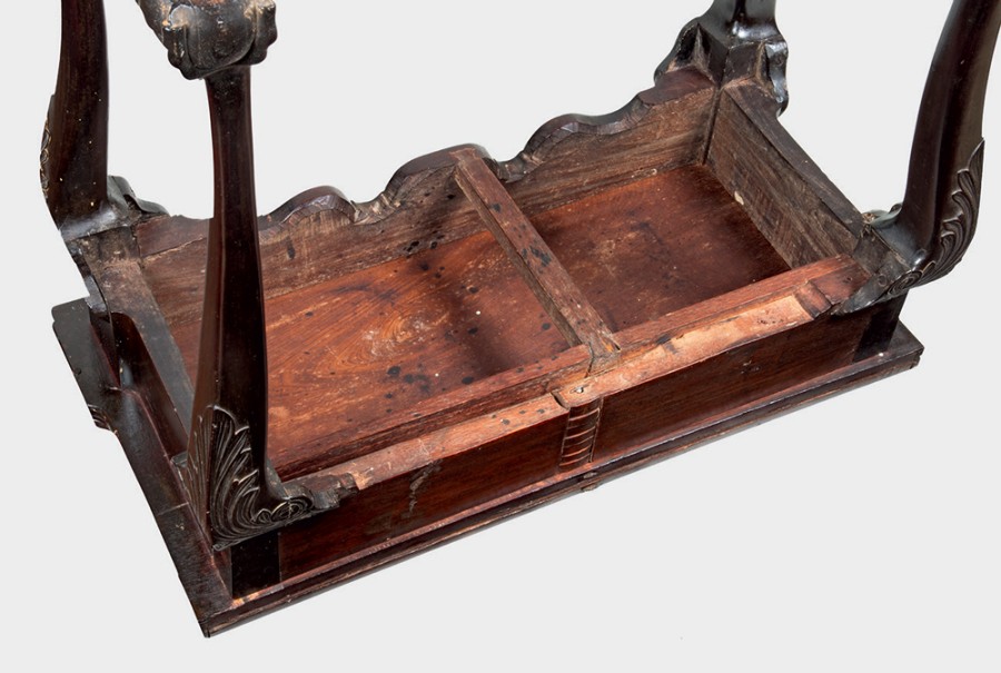 Table (fragmentary), vicinity of Edenton, North Carolina, 1745–1765. Mahogany. (Courtesy, Sotheby’s American Heritage Society Auction of Americana [New York: Sotheby’s, November 27–30 and December 1, 1979], lot 1725; photo, MESDA Object Database Files NN-224.) The legs are all that survive from the original table.