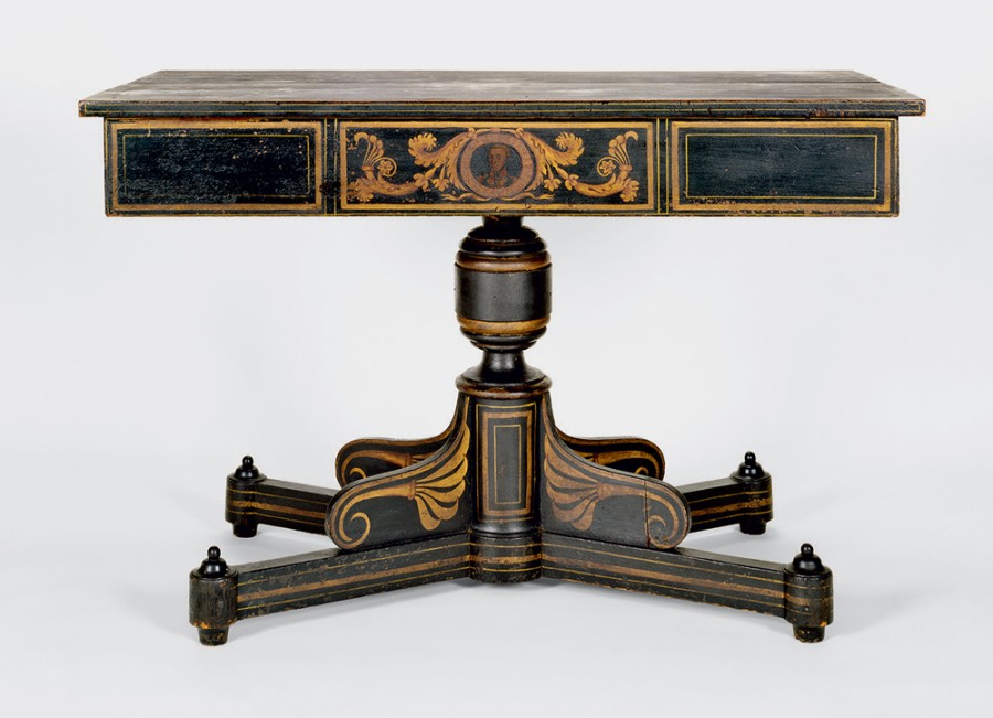Pier table by Hugh Finlay and Co., with miniature portrait of the marquis de Lafayette by Joseph Weisman, Baltimore, 1824. Unidentified wood; painted decoration, and iron. H. 31 3/4", W. 49 1/8", D. 23 1/4". (Courtesy, Chrysler Museum of Art, Norfolk, Va., gift of Dr. and Mrs. C. Frederic Fluhmann.)