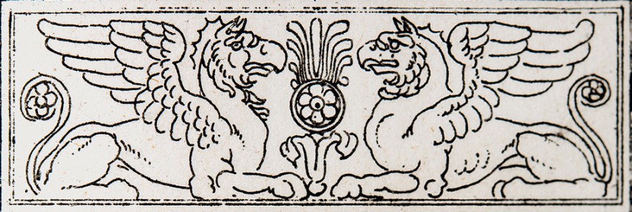 Related ornamental frieze designs with paired figures are found on the Brown suite, the Abell family chairs, as well as on other pieces attributed to the Finlays. However, the recumbent posture of the griffins on the Tenant suite varies from the standing position seen in these other pieces. Another illustration of recumbent griffins is seen in plate 52 of Percier and Fontaine, Recueil des décorations intérieures. These designs have previously been said to have been adapted from plate 56 of Thomas Sheraton’s The Cabinet-Maker and Upholsterer’s Drawing-Book (London, 1802); see, for example, Elder, Baltimore Painted Furniture, p. 76, and Kirtley, American Furniture, p. 294, cat. 297. Kirtley notes of the Tenant card table and the Waln suite that they were decorated with ornamentations found in Charles Heathcote Tatham’s Etchings, Representing the Best Examples of Ancient Ornamental Architecture: Drawn from the Originals in Rome, and other Parts of Italy, during the Years 1794, 1795 and 1796 (London, 1799), some of which were adapted by Sheraton. Tatham’s volume has several depictions of Roman eagles and the frieze of the Temple of Antoninus and Faustina in Rome that have parallels with the ornamental designs on furniture made in the Finlay shop. However, Sheraton’s and Tatham’s works do not include depictions of Jupiter’s iconography, which is integral to much of the Finlays’ decorative schemes, and it is more likely that Percier and Fontaine’s plates, which abound with such motifs, were the direct source for the Finlay shop.
