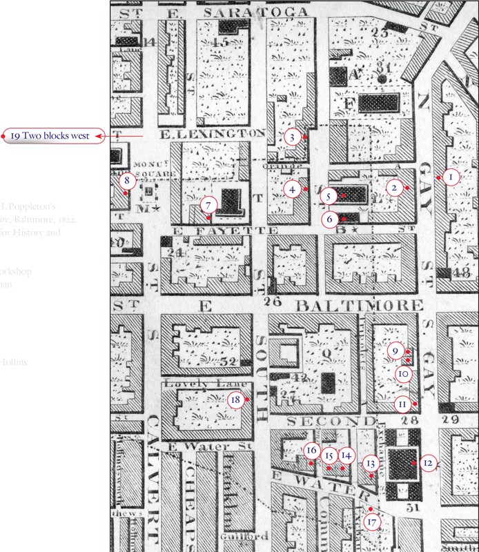 Detail of Thomas H. Poppleton’s This Plan of the City of Baltimore, Baltimore, 1822. (Courtesy, Maryland Center for History and Culture.)