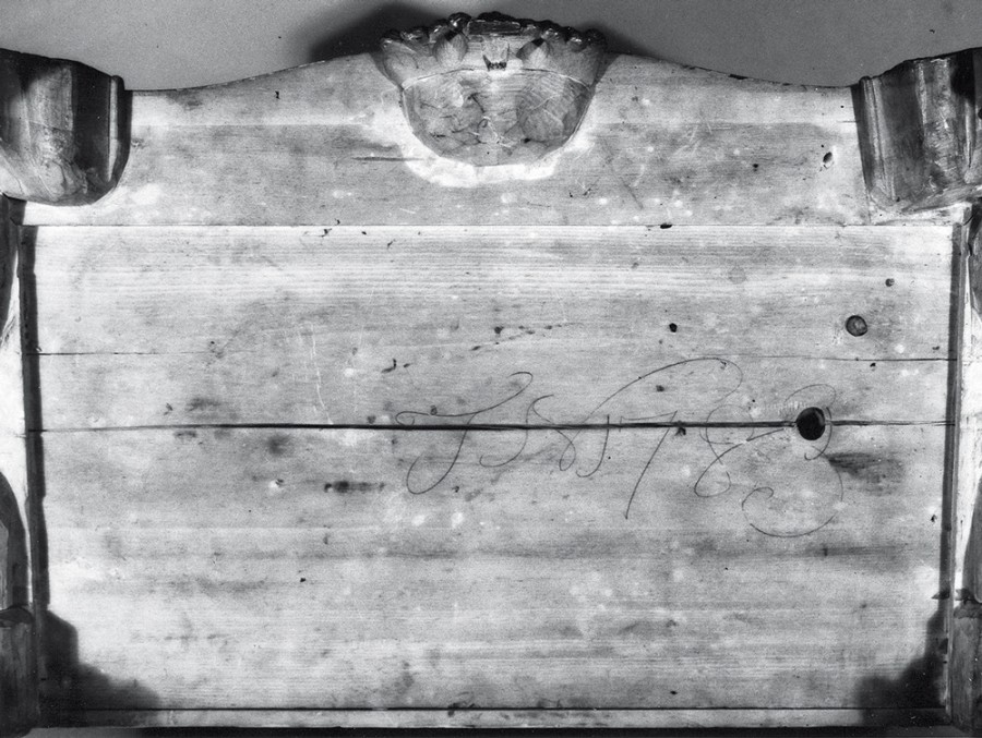 Detail under infrared light of the inscription “TN 1783” on the bottom of the chest of drawers in fig. 21. (Photo, Sack Family Archive, Yale University Art Gallery.)