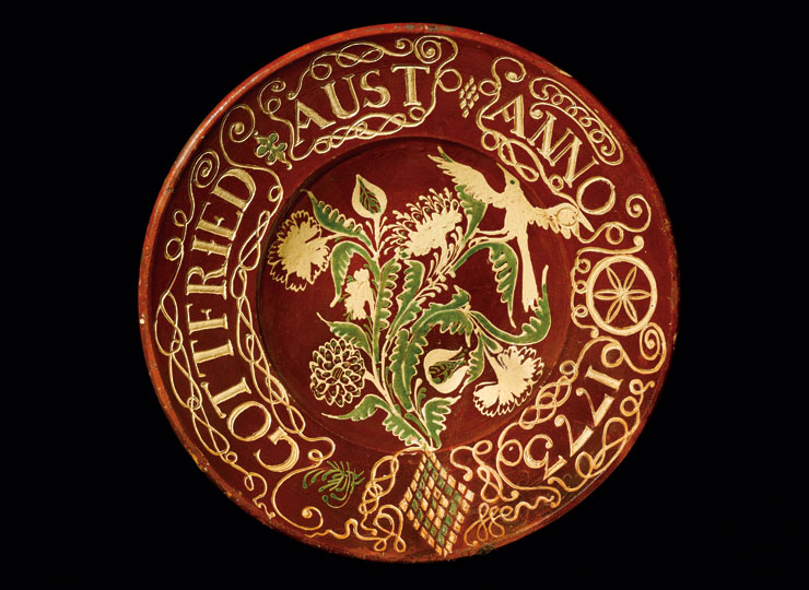 Shop sign made during Gottfried Aust's tenure as master of the pottery at Salem, North Carolina, 1773.