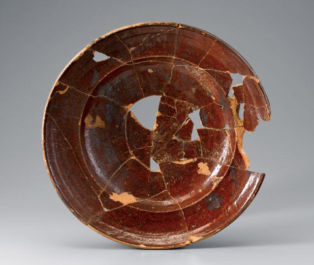 Dish recovered at Gottfried Aust's pottery site. Bethabara, North Carolina, 1756-1770.