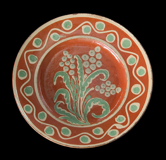 , probably made during Rudolph Christ's tenure as master of the pottery at Salem, North Carolina, 1790-1810. Lead-glazed earthenware. D. 14".