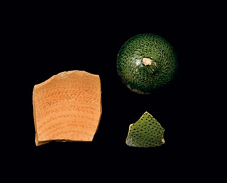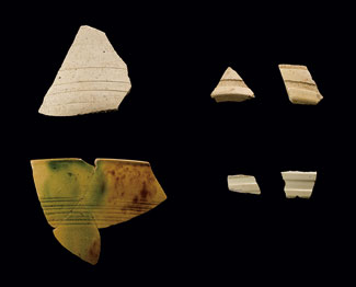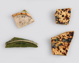 Waster fragments, John Bartlam, Cain Hoy, South Carolina, 1765-1770. Bisque-fired and lead-glazed earthenware.