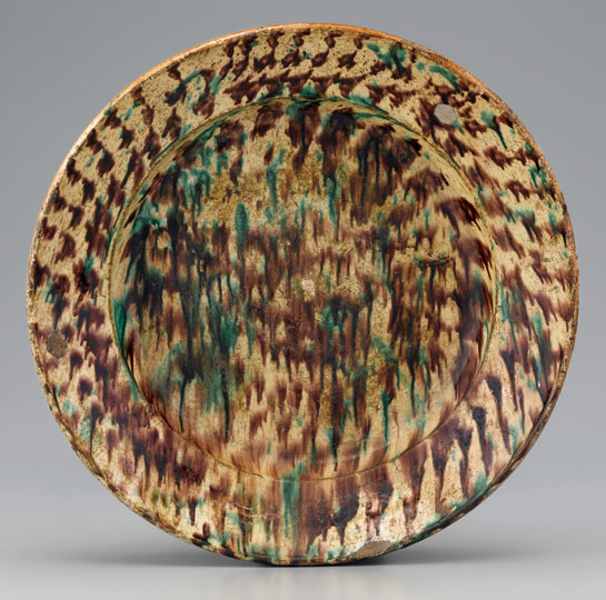 Dish, Salem or Bethabara, North Carolina, 1772-1800. Lead-glazed earthenware. D. 13". (Old Salem Museums & Gardens.)
