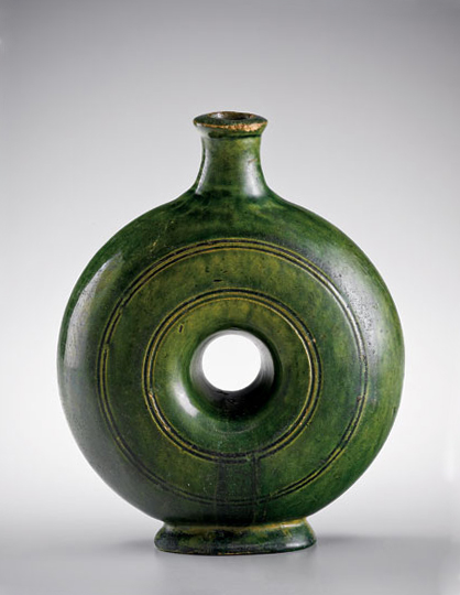 Ring bottle, Salem, North Carolina, 1795-1810. Lead-glazed earthenware. H. 5 1/2".