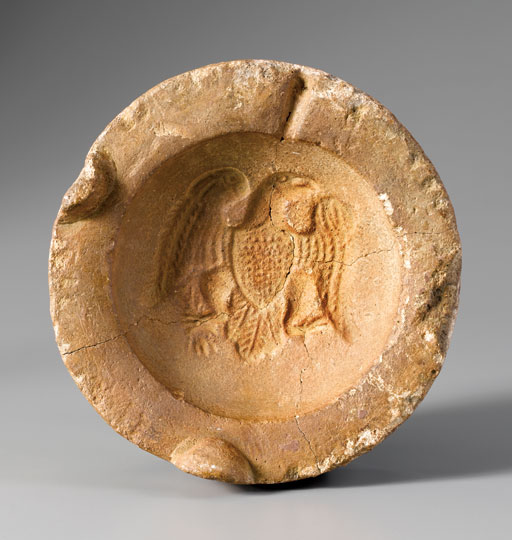 Eagle bottle mold, Salem, North Carolina, 1819-1830. Plaster. H. 6 1/2".