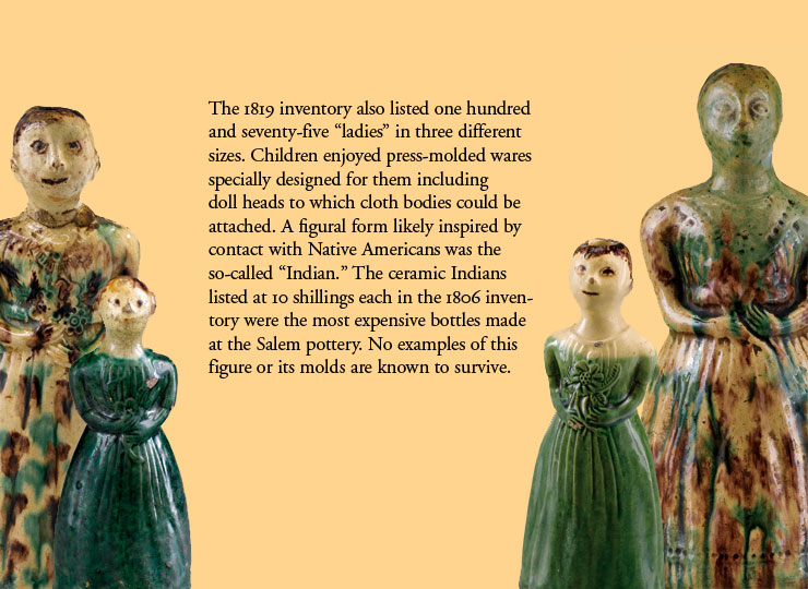 Lady bottle, Salem, North Carolina, 1806-1830. Lead-glazed earthenware. H. 7 3/4."