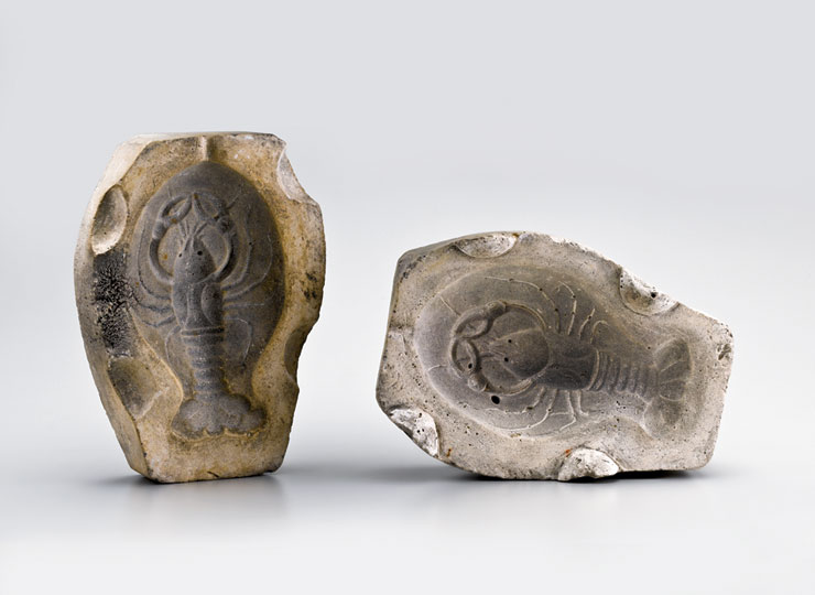 Crayfish bottle mold, Salem, North Carolina, 1801-1830. Plaster.