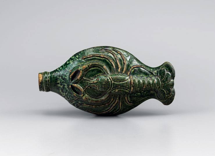 Crayfish bottle, Salem, North Carolina, 1801-1840. Lead-glazed earthenware.