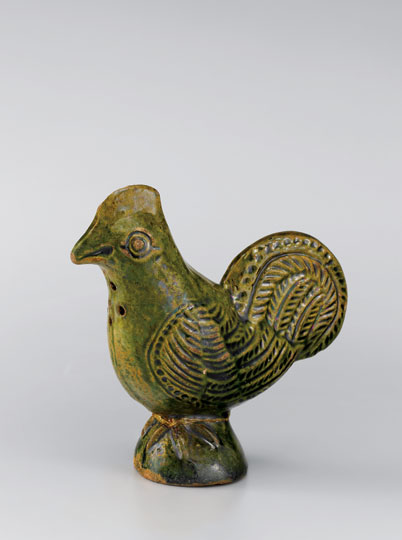 Chicken caster, Salem, North Carolina, 1810-1850. Lead-glazed earthenware. H. 4".