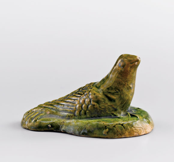 Bird figure, Salem, North Carolina, 1810-1820. Lead-glazed earthenware. H. 2 3/4".