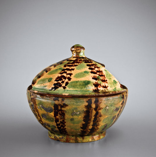 Sugar bowl, possibly Mount Shepherd pottery, Randolph County, North Carolina, 1793-1800. Lead-glazed earthenware.