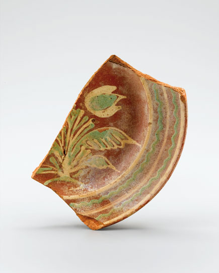 Dish fragment, Salem, North Carolina, 1780-1800. Lead-glazed earthenware.