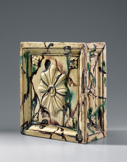 Stove tile, Salem or Bethabara, North Carolina, 1760-1800. Lead-glazed earthenware. H. 8 5/8".