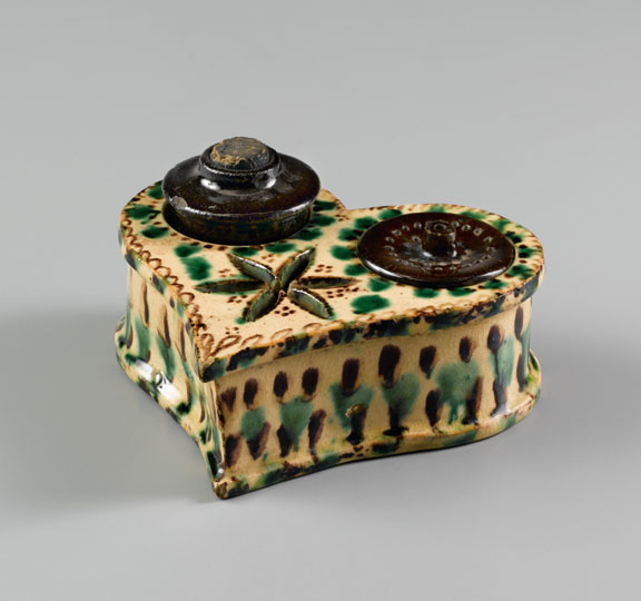 Inkwell, John Holland, Salem, North Carolina, 1810-1813. Lead-glazed earthenware. H. 5".