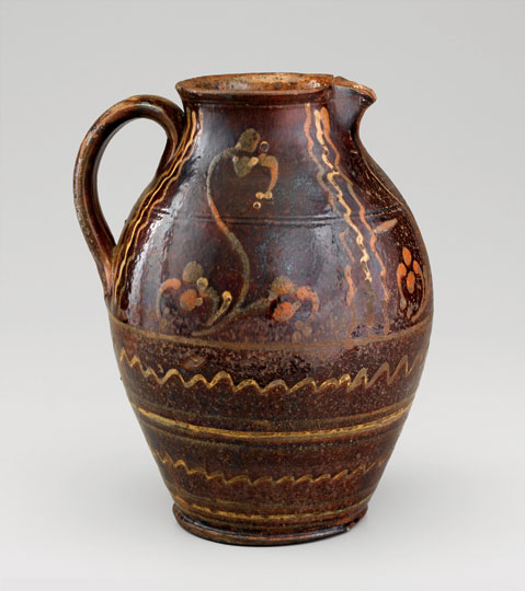 Pitcher, Alamance County, North Carolina, 1785-1810. Lead-glazed earthenware. H. 10". (Old Salem Museums & Gardens.)
