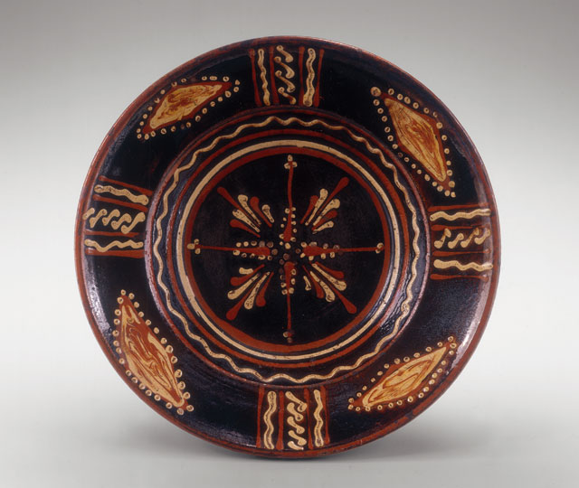 Dish, Alamance County, North Carolina, 1790-1820. Lead-glazed earthenware. D. 11". (Colonial Williamsburg Foundation.)