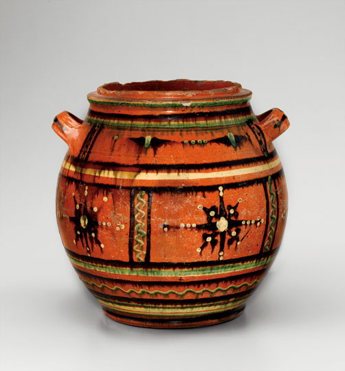 Sugar pot, Alamance County, North Carolina, 1790-1820. Lead-glazed earthenware.