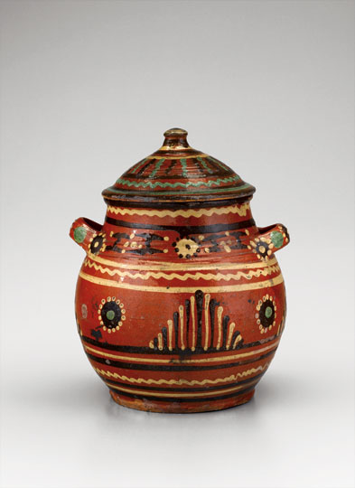 Sugar pot, Alamance County, North Carolina, 1790-1820. Lead-glazed earthenware.
