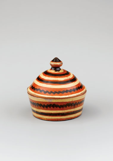 Condiment pot, Alamance County, North Carolina, 1795-1820. Lead-glazed earthenware. H. 5".