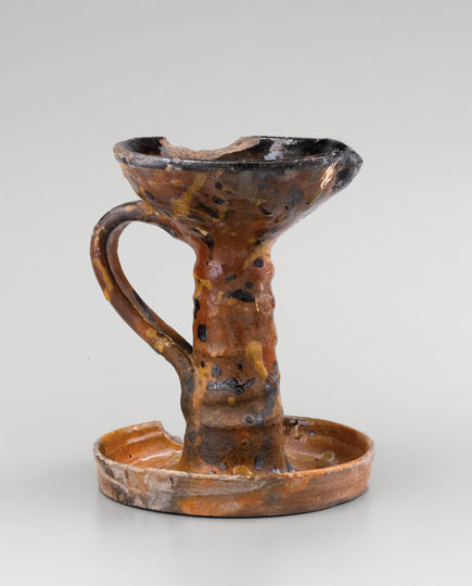 Fat lamp, attributed to Solomon Loy, Alamance County, North Carolina, 1825-1840. Lead-glazed earthenware. H. 6 5/8".