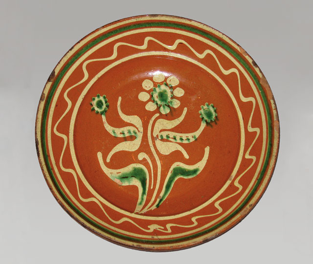 Dish, attributed to the Dennis potteries, New Salem, North Carolina, 1790-1832. Lead-glazed earthenware. D. 13 1/4".
