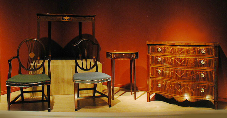 By the end of the eighteenth century, Baltimore had become one of the five largest cities in the United States. Prosperous and growing rapidly, it supported a large community of artisans, among them more than fifty cabinetmakers. Many were relatively new to the city and brought a wide array of design traditions learned in other urban centers, both British and American. Numbers of their patrons must have been newcomers too, since Baltimore's population quadrupled between 1775 and 1800, reaching more than 26,000 at the century's end. As a consequence, neither cabinetmaking traditions nor taste in household furniture were as firmly established in Baltimore as they were in older cities. Together, these conditions were largely responsible for the unconventional nature of much neoclassical Baltimore furniture.