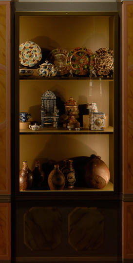 was a symbol of intimacy probably given from one lover to another. Even the ceramic “books” functioned as a handwarmer when fi lled with hot water. Still unclear is the original purpose of the dovecote and the ceramic chair.