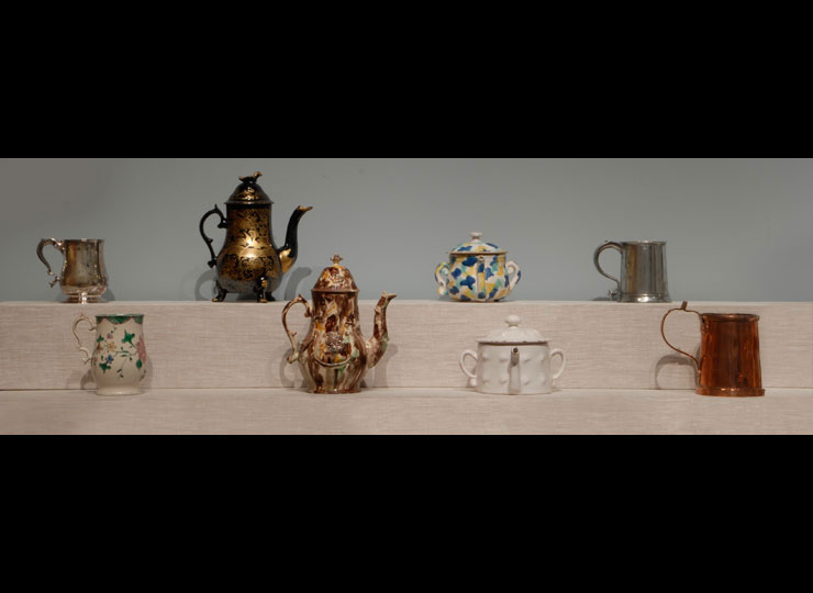 Pewter was a common, mid-range tableware in early America. It could be polished to resemble silver but cost a fraction of the price. An alloy of tin and copper, pewter was easy to cast into useful and stylish forms. However, wares made of this soft metal gradually wore out from daily wear and tear. Owners often returned their old pewter to be melted and re-cast. Copper offered another less expensive alternative to silver.