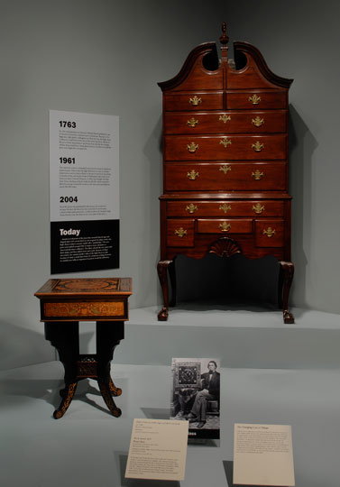 The twentieth century witnessed an increased interest in America’s material past. Objects like this high chest rose in value as artistic masterpieces and as historic links to the era of America’s founding. Collectors Polly and Stanley Stone of Milwaukee especially loved furniture from colonial Newport. In 1961 they bought the high chest from a leading antiques dealer for $9500, which was more than the average household income at the time and equivalent to nearly $60,000 today.