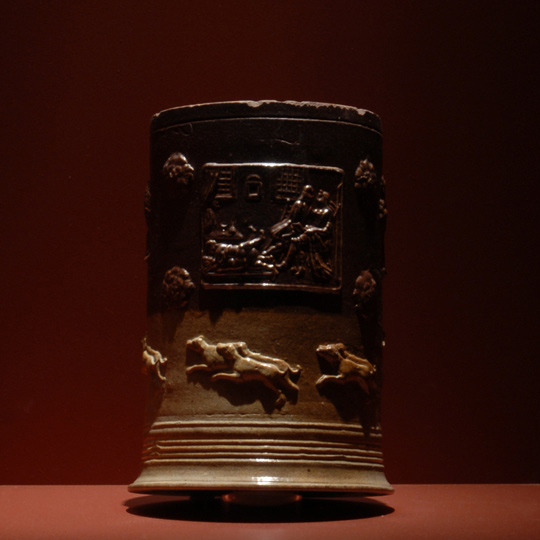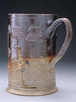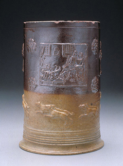 Other objects were even more explicit. This mug is a piece of erotica. When filled with alcohol and passed between drinkers in taverns and homes, the mug would have inspired raucous banter. Bawdy pictures and provocative sayings were also common on other objects associated with alcohol, such as tankards and punch bowls.