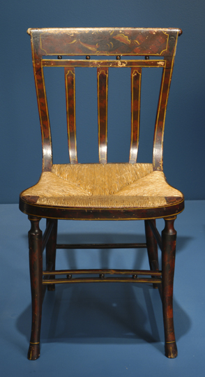 Gragg used the brand to ward off imitators, but he was not necessarily successful in doing so. An unidentified artisan crafted the chair on the right. Bent wood pieces create a back and seat that look like an Elastic Chair, but this imitation lacks Graggs patented compound curve.