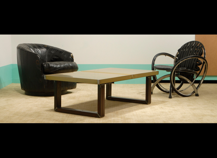 Joel Hester mines automobile scrap yards for material for his furniture, which takes advantage of the rich paint colors and rusted surfaces of discarded cars.