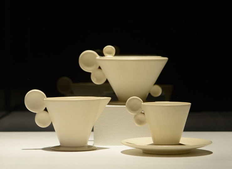 Creamer, sugar bowl, teacup, and saucer, ca. 1929–33