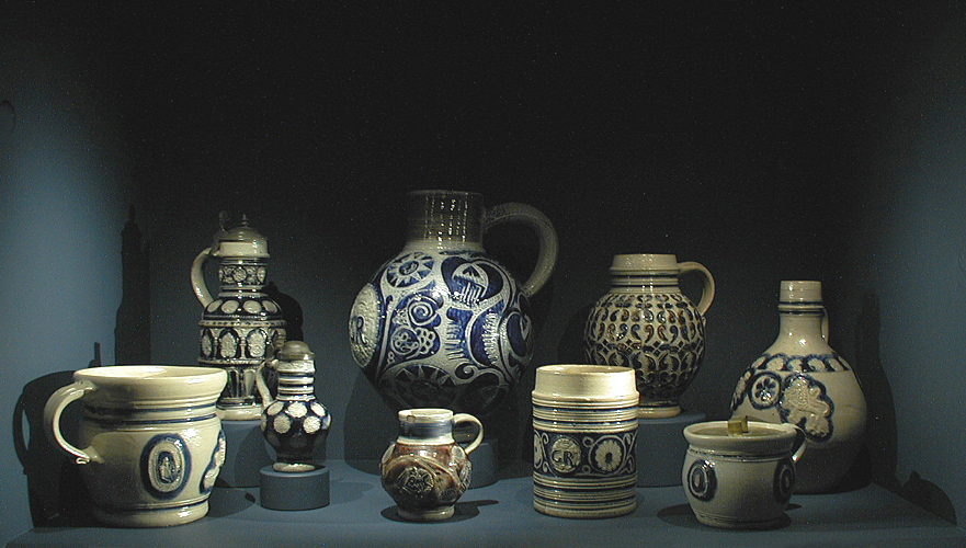 Both brown and blue-on-gray stonewares from the Rhineland were in general