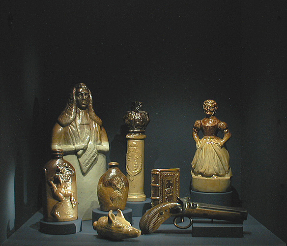 2. Flask in the shape of Lord Grey, salt-glazed stoneware. Lambeth, ca. 1832.