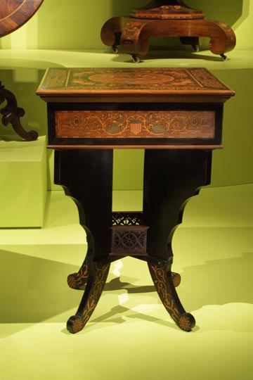 Mahogany, maple, cedar, walnut, holly, ebony, and other ebonized and stained woods