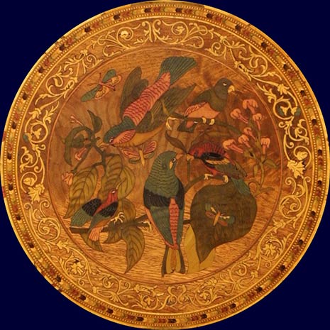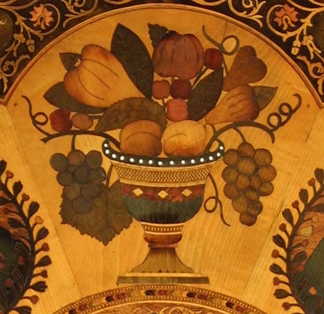 Mahogany, maple, cedar, walnut, holly, ebony, and other stained woods