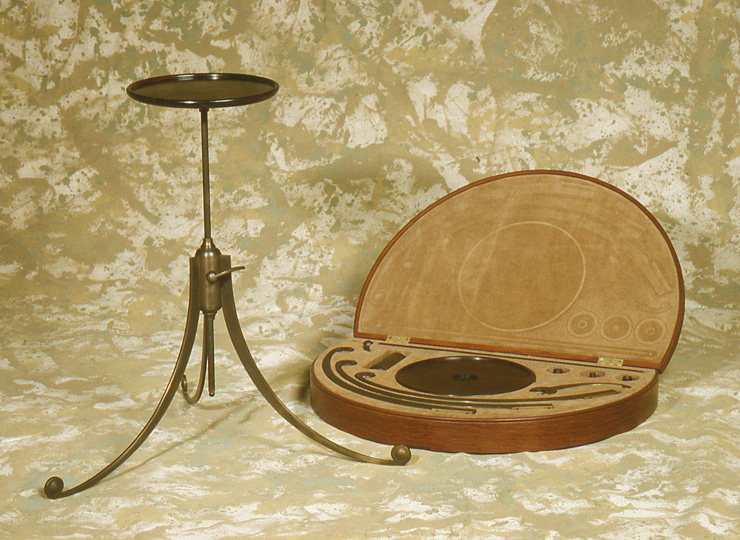 The title 100, like most of Peteran’s titles, is quite literal. It was the one hundredth object that he managed to sell. The work consists of a pair of identical tables, one of which is normally displayed in a disassembled state, packed into a custom-built, leather-lined case. The parts of the two tables are interchangeable, the bronze and wood shaped to extraordinarily tight dimensional tolerances on equipment belonging to a friendly Toronto machinist. The metaphor of a gun leaps to mind, both because of the carrying case and the combination of dull black metal and polished wood. Perhaps when he made this highly conceptual piece, which marks a turning point in his career, Peteran was thinking of himself as a sniper—targeted and precise, camped on the edges of the furniture field and picking his spots. The title of the work also hints at another subject: mass production. These tables were manufactured through the investment of hours and hours of laborious set-up and calibration on expensive replicating tools, but there are only two of them. By concentrating the productive capacity required to make a hundred or a million objects into only a pair, Peteran perhaps hoped to create an experience of unusual intensity.