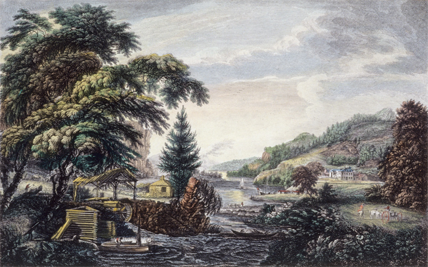 Published by Thomas Jefferys (English, ca. 1719–1771) A Design to represent the beginning and completion of an American Settlement or Farm, 1761London, EnglandEngraving with etching and hand coloringLent by the Chipstone Foundation, 1968.5