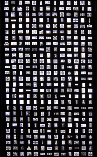 Individual artworks in To Speculate Darkly are on loan from the Kavi Gupta Gallery and Anita and Marty Nesbitt. The lantern slides in the glass ceiling are a gift from the University of Chicago Department of Art History.