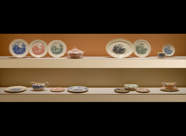 Up until the 1920s transfer printed ceramics made in Staffordshire that revived early nineteenth-century pastoral imagery were exported to America in great quantity with little American competition. This British monopoly changed in the 1930s when Thorley started designing for Taylor Smith & Taylor. He designed five or six different patterns that pictured the same types of romantic castles and ruined abbeys as the popular Staffordshire wares. Thorley engraved the patterns himself and sometimes included his signature.