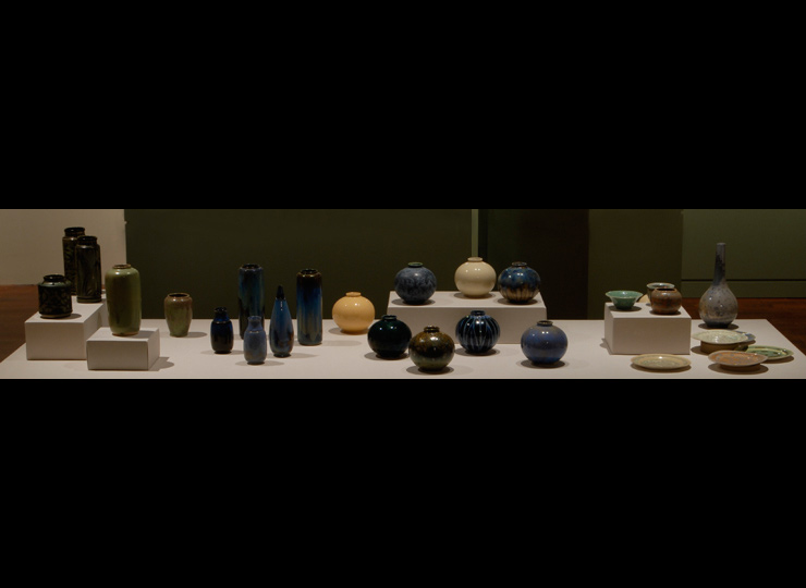 Fascinated with both color and form, Thorley often took a single shape and then added many different colors, textures, and patterns to create a wide variety of distinctive objects. Thorley was particularly skilled with mottled glazes. His rich and deep blues seem to be oozing or sometimes cascading down the side of a vase. The effect was created by removing the piece from the kiln when it reached just the right point of richness and depth. For this reason, each piece is unique.