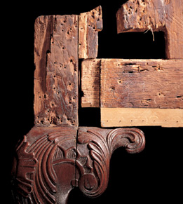 construction details The most damning evidence on the Stones' chair was discovered when it was taken apart. Old wooden peg holes are present on the tenons of the seat rails, but no corresponding holes are found on the upper part of the front legs-a clear sign that the seat rails are salvaged components from another chair that had pinned joints. |