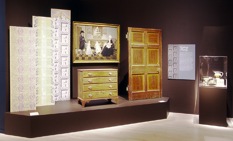 Marbling and graining began their ascent in the 1780s and, by 1792, they had a new name, "Fancy Painting". This painting was economical when compared to the use of exotic figured wood. Yet, to explain it in mere economic terms tells only part of the story. Real woods simply could not provide the visual impact of painted examples. One fancy painter was clearly impressed with these new techniques when he wrote, "It is doubtful whether it would be desirable to select many of the fancy woods for house decoration, in preference to the imitations which are produced by modern artists...even if they could be obtained at the same cost."