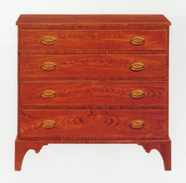 E. Morse, chest of drawers, Livermore, Maine, 1814. Pine, brass, and painted decoration. H. 34 3/4", W. 36 5/8", D. 17 5/8". (From the Collections of Henry Ford Museum & Greenfield Village.) The chest is signed in pencil: "Made by E. Morse/Livermore/June 7th 1814."