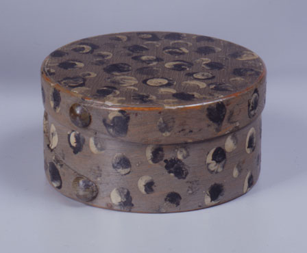Pantry box, America, 1815-1840. Maple, pine and painted decoration, and brass nails. H. 2", Diam. 4". (Courtesy, a New York Collector)