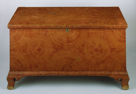 New England, 18251840. Wood and painted decoration. H. 40", W. 42 1/4", D. 18 1/8". (Collection of the American Folk Art Museum, New York. Gift of Jean Lipman in honor of Cyril Irwin Nelson, 1994.5.1; photo, Gavin Ashworth.)
